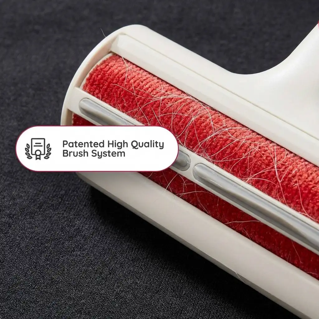 Cat hair is notoriously difficult to clean because it is finer than dog hair. It doesn’t just sit on top of your sofa; it weaves itself into the fabric fibers. Sticky tape grabs the surface fuzz, but it often leaves the embedded hairs behind. The ChomChom operates differently. It uses two directional strips of red velvet fabric (lint brush material) separated by a rubber squeegee.